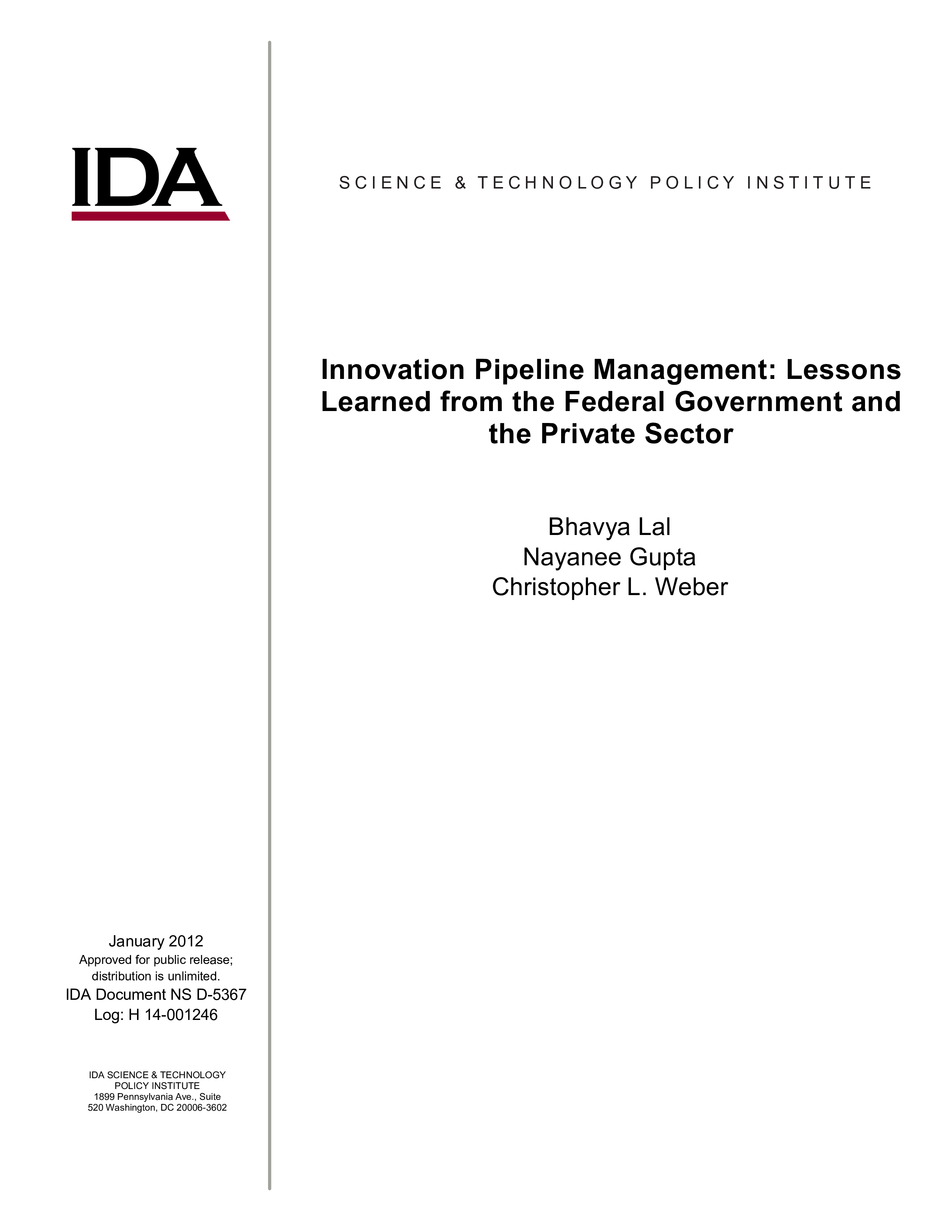 The Assistant to the President, Chief Technology Officer, and Associate Director of Technology at the White House Office of Science and Technology Policy (OSTP) asked the IDA Science and Technology Policy Institute (STPI) to examine innovation pipelines in a range of public and private organizations and to identify practices that may be relevant to a broader set of government innovation programs. Building on a review of the literature and discussions with innovation leaders in the government and private sectors, STPI identified practices worth considering and emulating for each of the stages of an innovation pipeline. Findings focused on mechanisms to source early stage ideas, how to stage-gate ideas (portfolio management tools) and fund them, how to scale-up the best ideas, with the goal of replicating what works. While these practices are not directly transferable as-they-are, they provide useful food-for-thought as government agencies transform their processes and systems to adjust to the challenges of the twenty-first