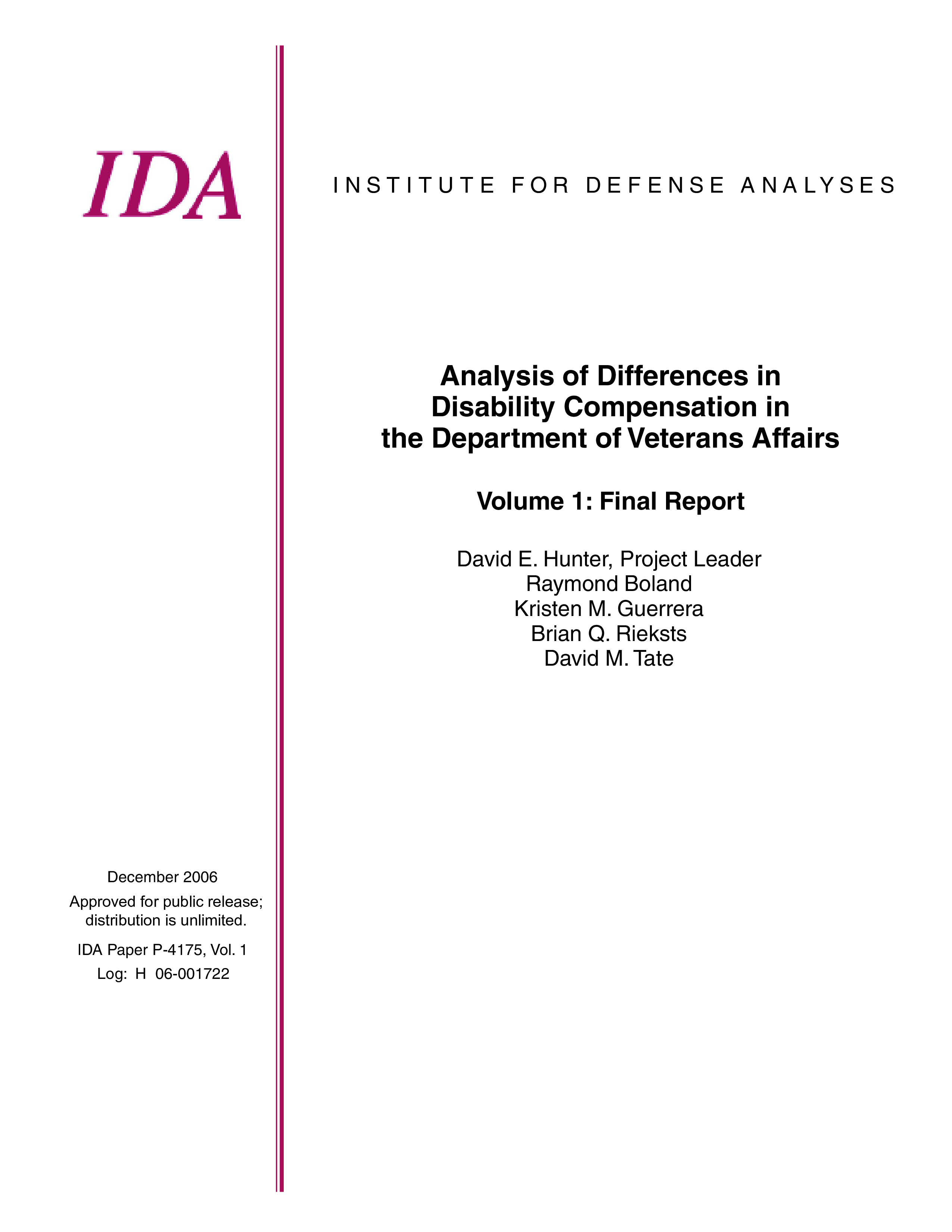 IDA studied the differences across states in average disability compensation awards and in the percentage of veterans receiving disability compensation. IDA first identified the major national factors that influence disability compensation awards or the percentage of veterans receiving compensation.