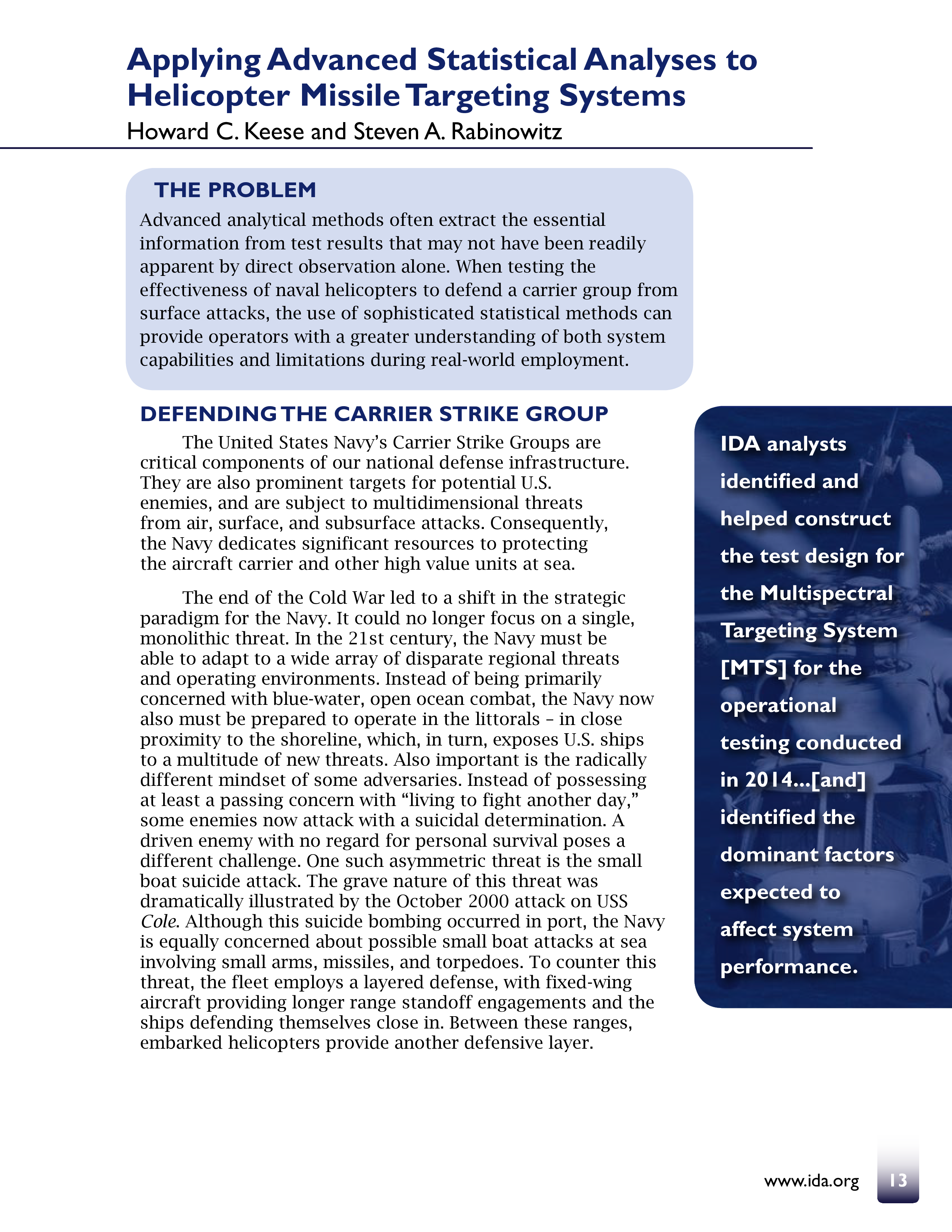 Applying Advanced Statistical Analyses to Helicopter Missile Targeting Systems