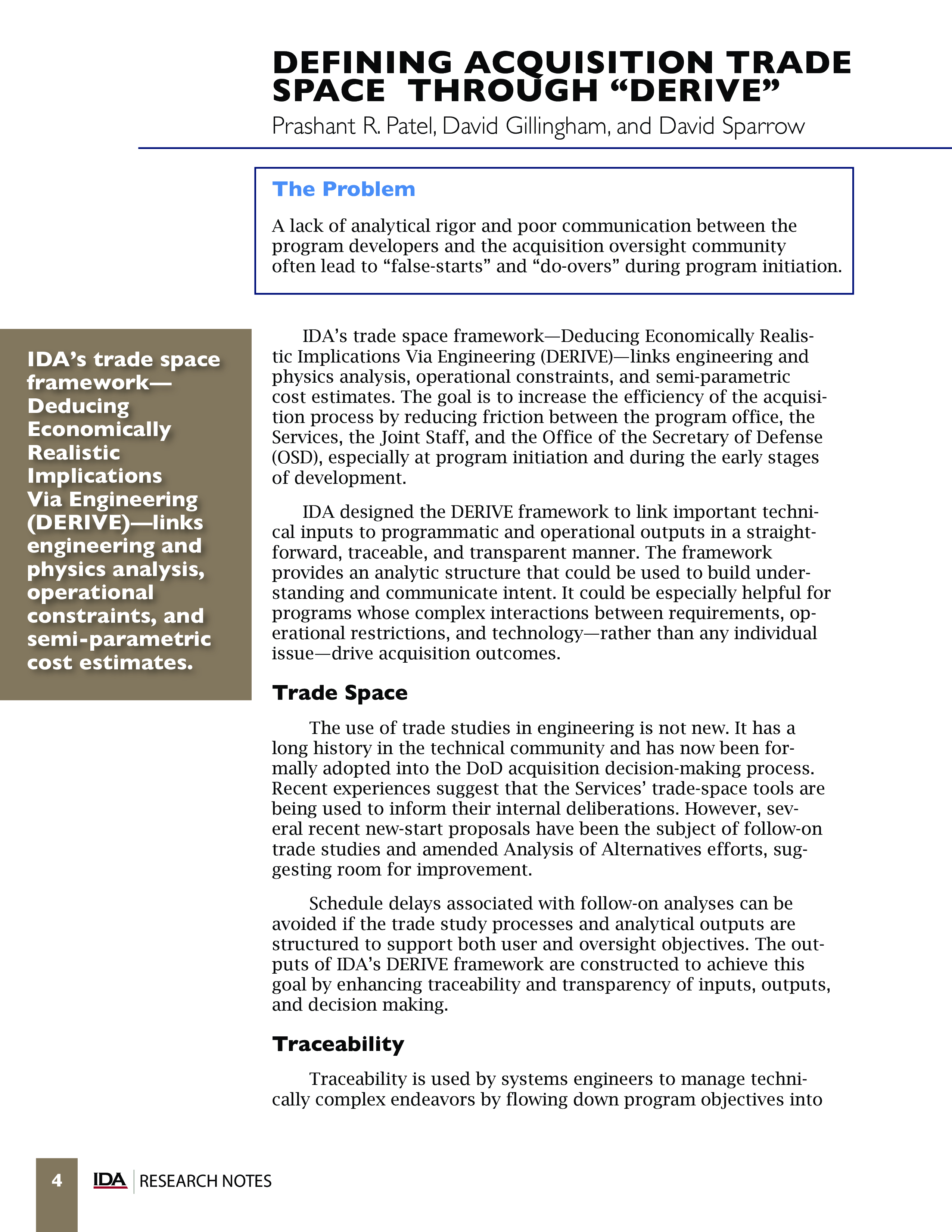 IDA Research Notes Acquisition Part 1 Starting Viable Programs Defining Acquisition Trade Space thro