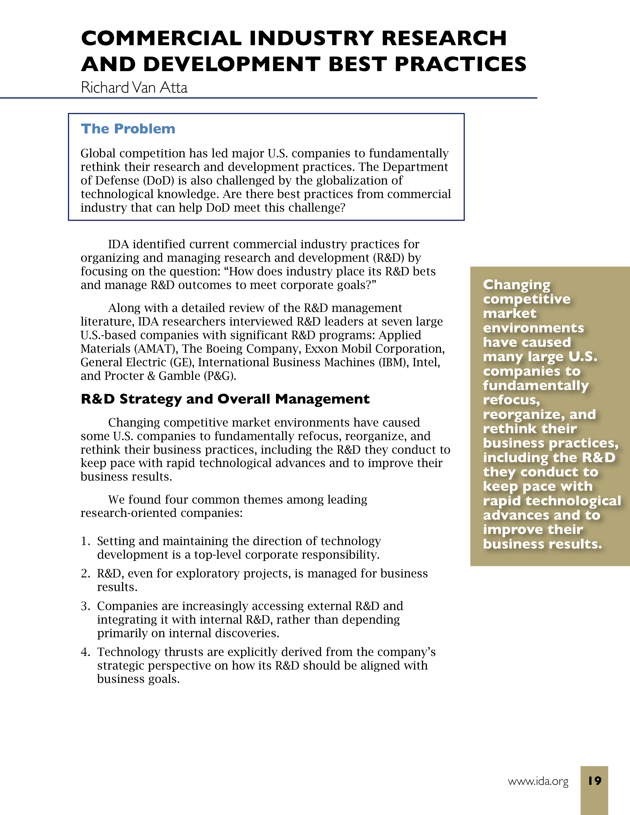 IDA Research Notes Fall 2014 Commercial Industry Research and Development Best Practices