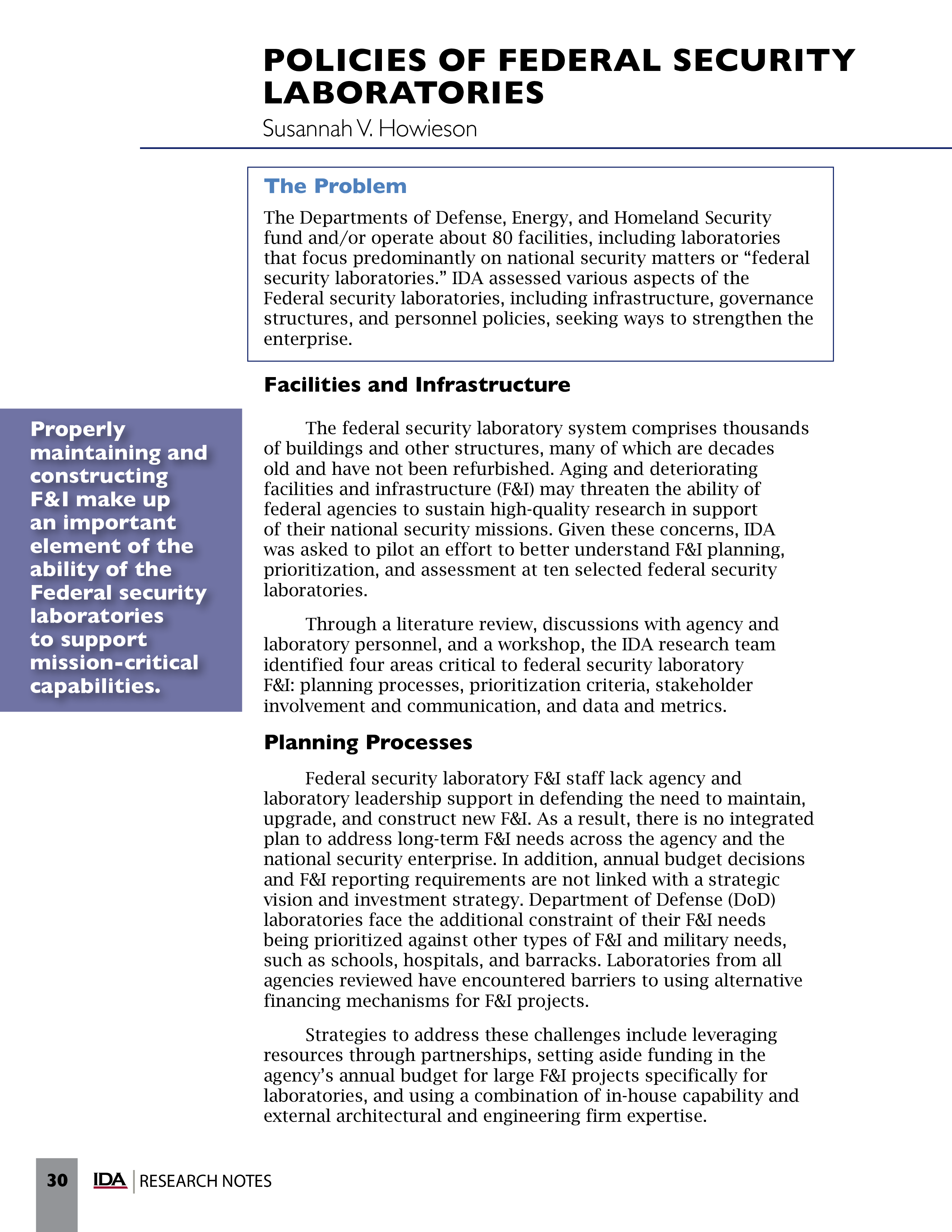 IDA Research Notes Fall 2014 Policies of Federal Security Laboratories