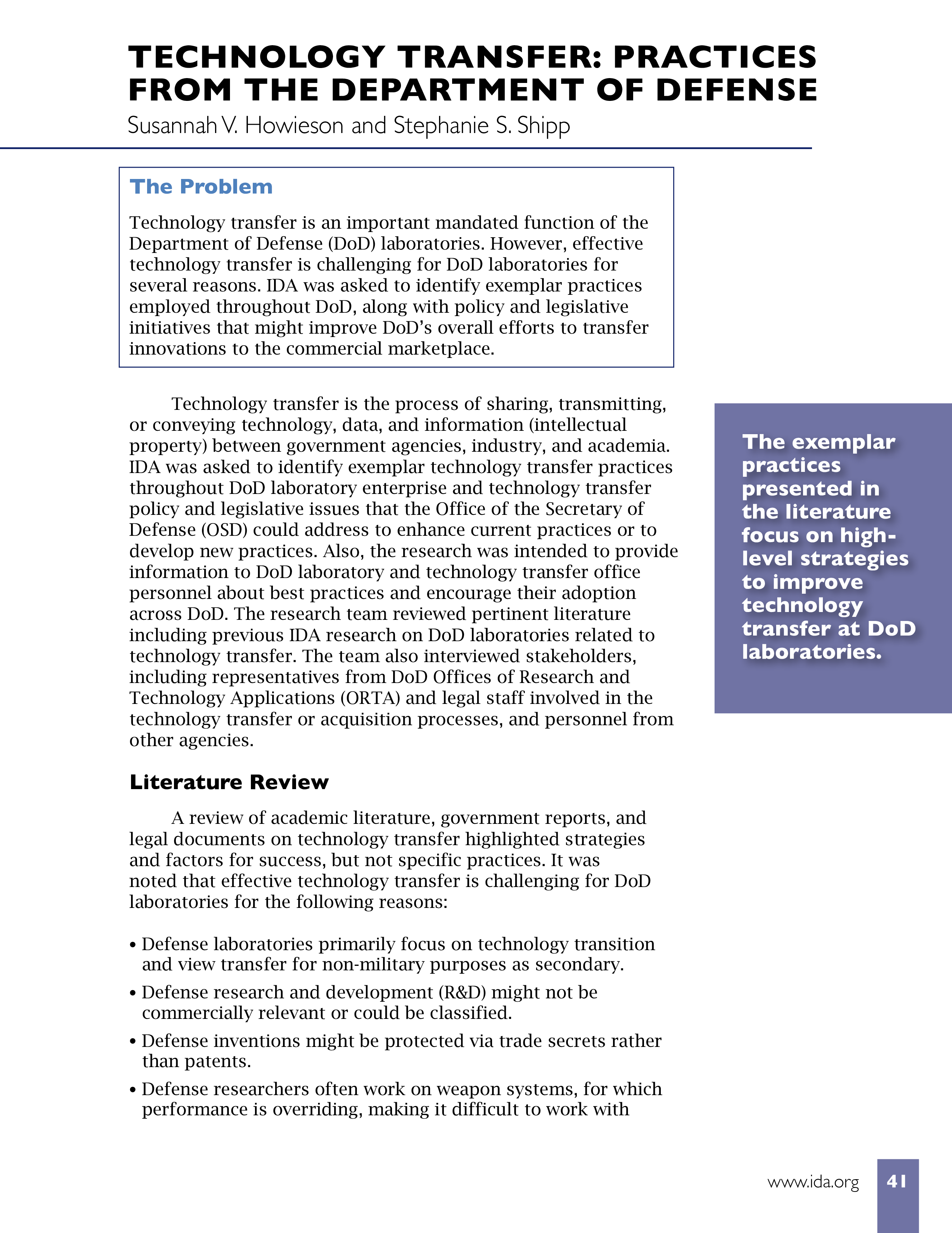 IDA Research Notes Fall 2014 Technology Transfer Practices from the Department of Defense