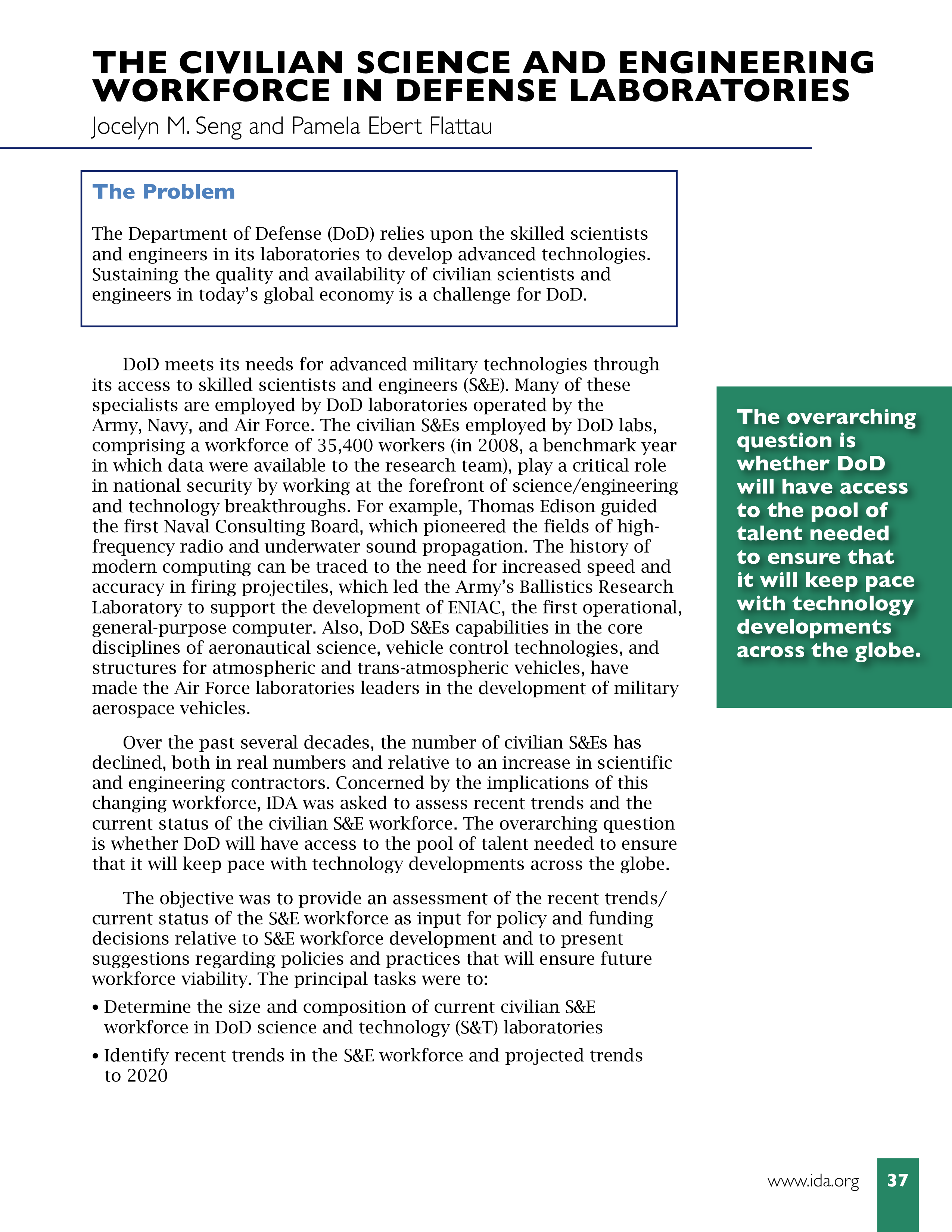 IDA Research Notes Fall 2014 The Civilian Science and Engineering Workforce in Defense Laboratories