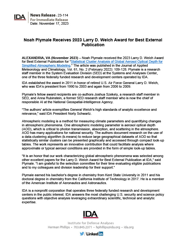 Noah Plymale Receives 2023 Welch Award