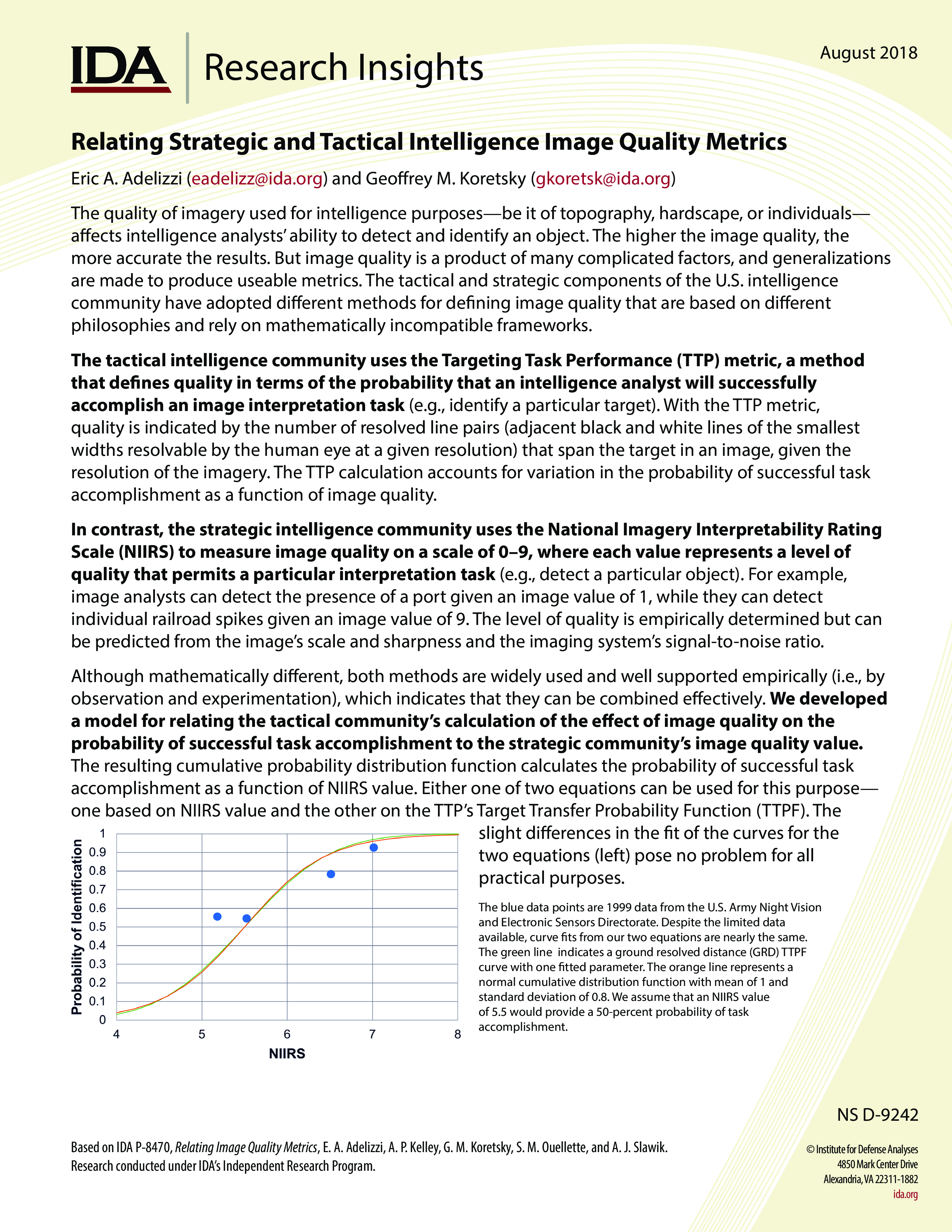 Relating Strategic and Tactical Intelligence Image Quality Metrics