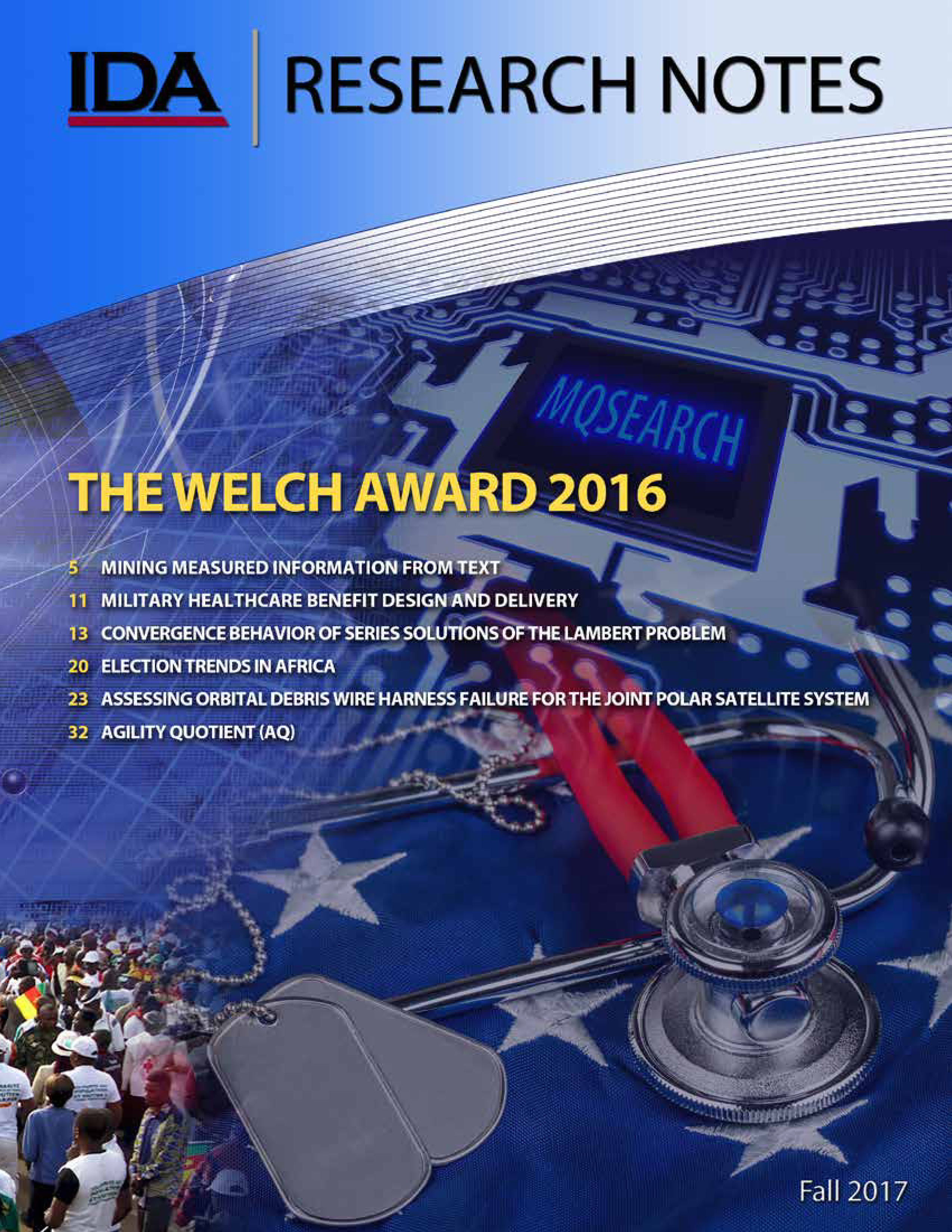 This issue of IDA Research Notes is dedicated to the winner and finalists of the 2016 Larry D. Welch Award for best external publication. Named in honor of IDA former president and U.S. Air Force Chief of Staff, General Larry Welch, the award recognizes individuals who exemplify General Welch’s high standards of analytic excellence through their external publication in peerreviewed journals or other professional publications, including books and monographs. The articles in this edition are executive summaries of the original published pieces. We have identified and credited the original publication for each article, and, where possible, we have included a link to the full piece.