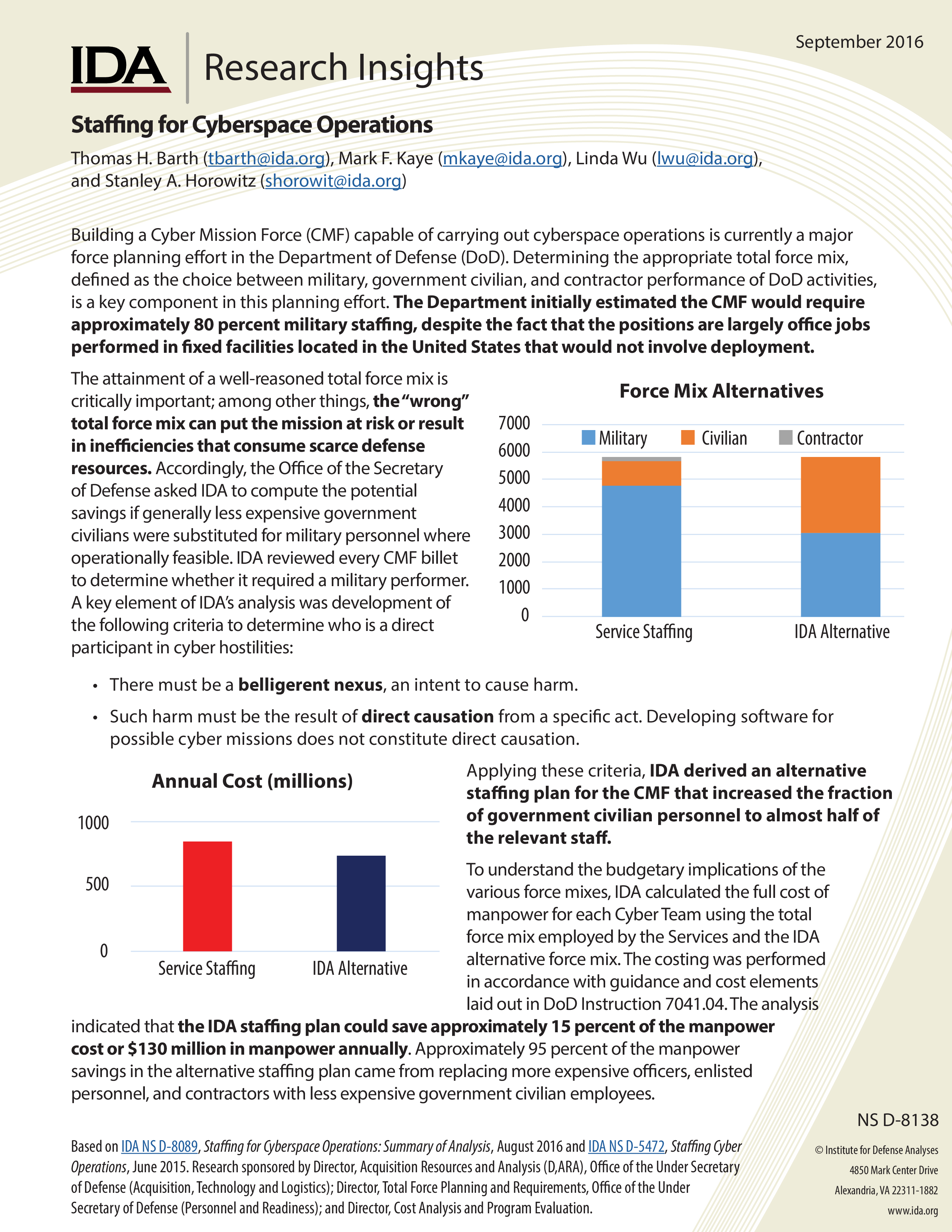 Staffing for Cyberspace Operations