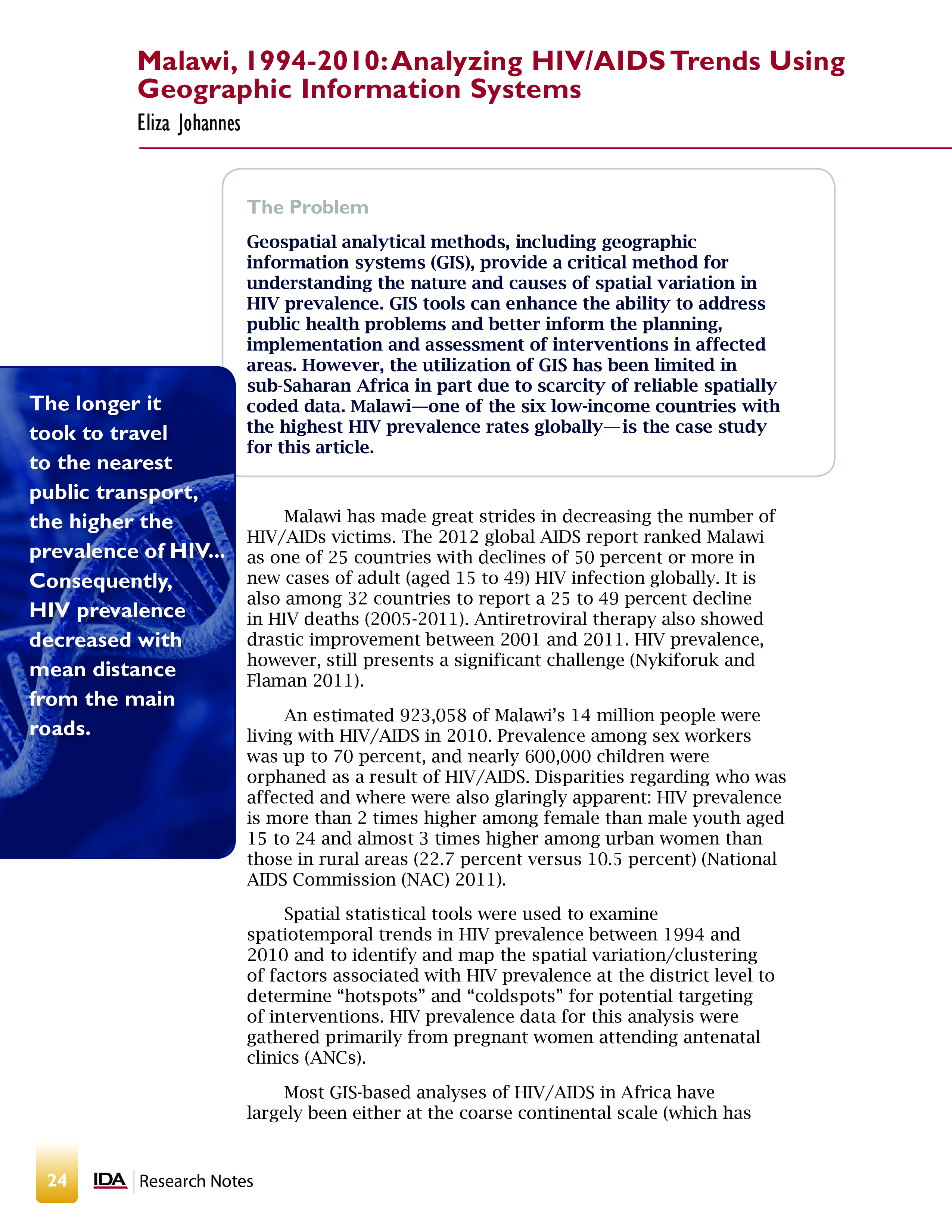 The Welch Award 2015 Malawi 19942010 Analyzing HIVAIDS Trends Using Geographic Information Systems