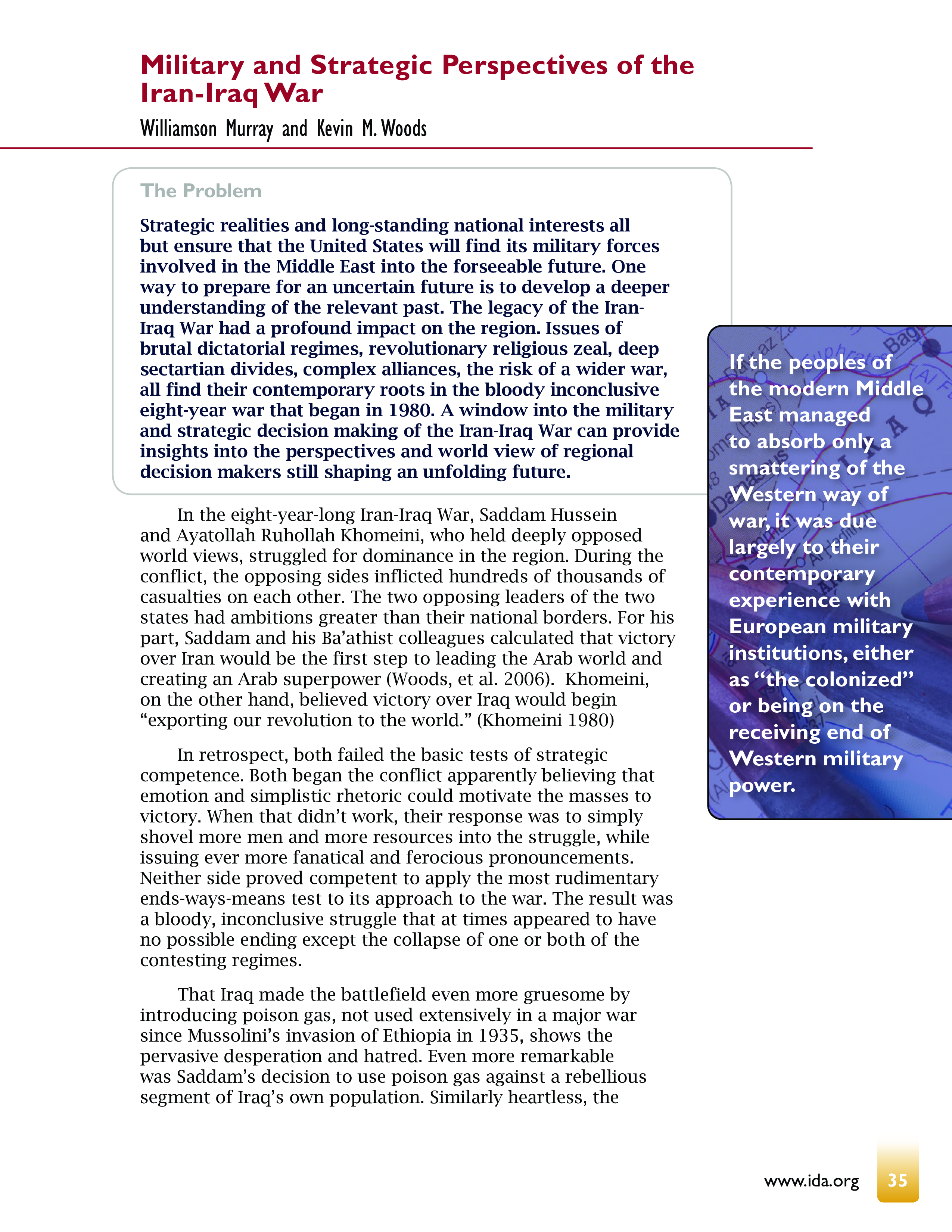 The Welch Award 2015 Military and Strategic Perspectives of the Iran-Iraq War