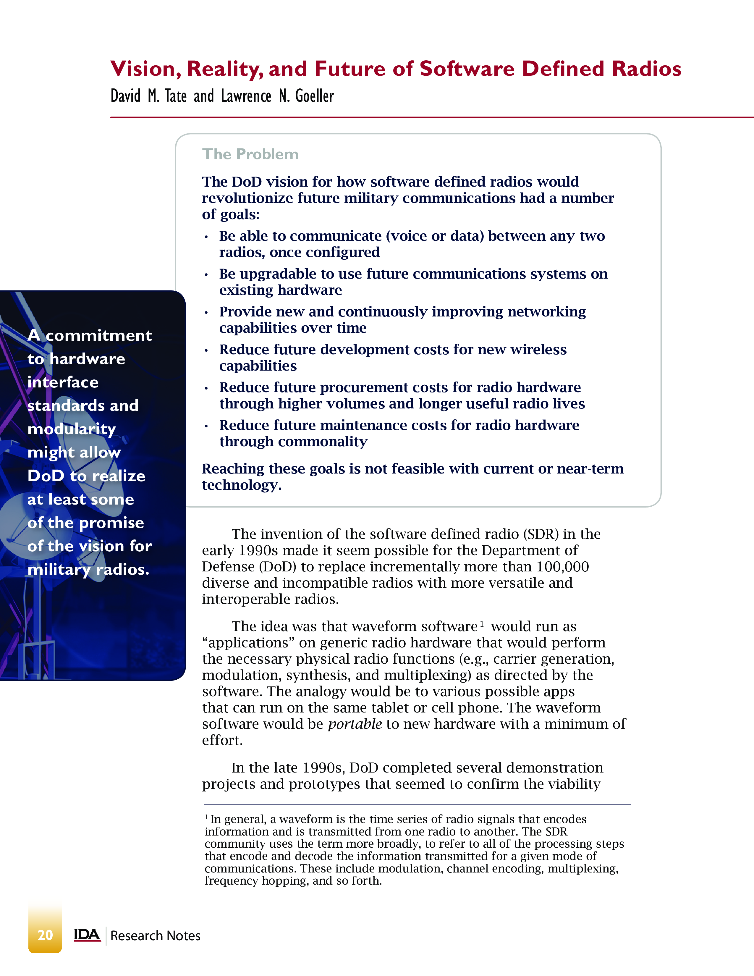 The Welch Award 2015 Vision Reality and Future of Software Defined Radios
