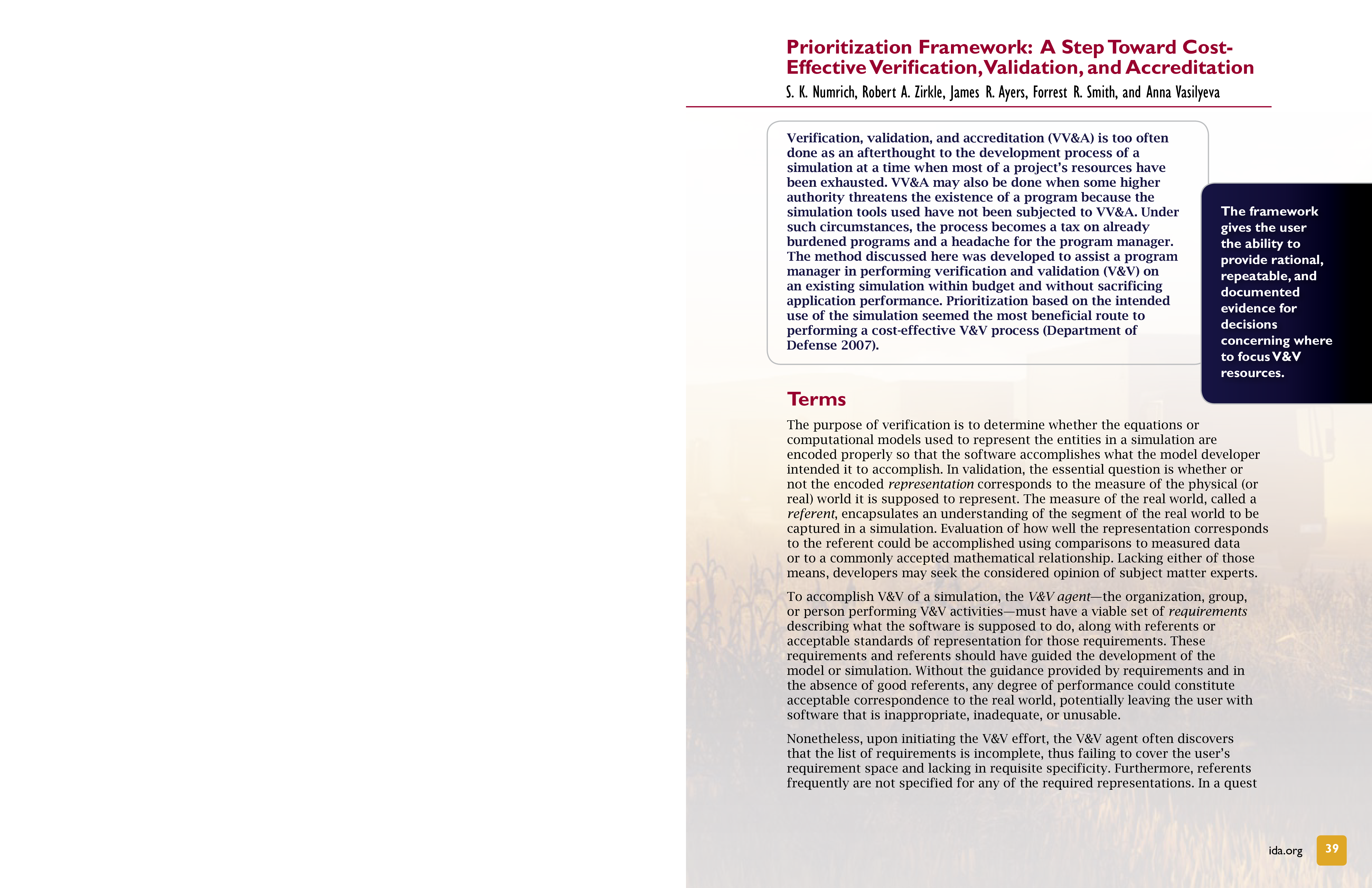 Welch Awards 2017 Prioritization Framework A Step Toward CostEffective Verification Validation and Accreditation